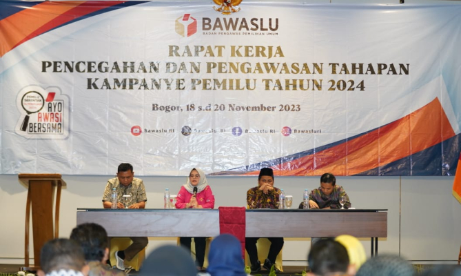 Forum Rapat Kerja Pencegahan dan Pengawasan Tahapan Kampanye Pemilu Tahun 2024 di Bogor, Sabtu (18/11/2023)/foto: Publikasi dan Pemberitaan Bawaslu.