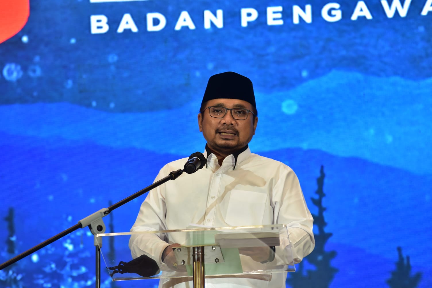 Menteri Agama Yaqut Cholil Qoumas saat memberikan sambutan dalam Perayaan Natal Bawaslu di Jakarta, Senin (13/12/2021) malam/Foto: Pemberitaan dan Publikasi Bawaslu RI
