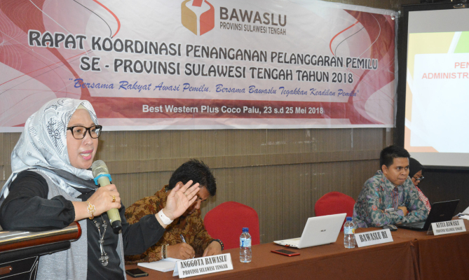 Rakor penanganan pelanggaran se-Bawaslu Provinsi Sulawesi Tengah dihadiri Ketua Bawaslu Provinsi Sulawesi Tengah (Sulteng) Ruslan Husen, Anggota Bawaslu Provinsi Sulteng Zatriawati dan Sutarmin dan diikuti Panwaslu Kabupaten/Kota se-Provinsi Sulteng.