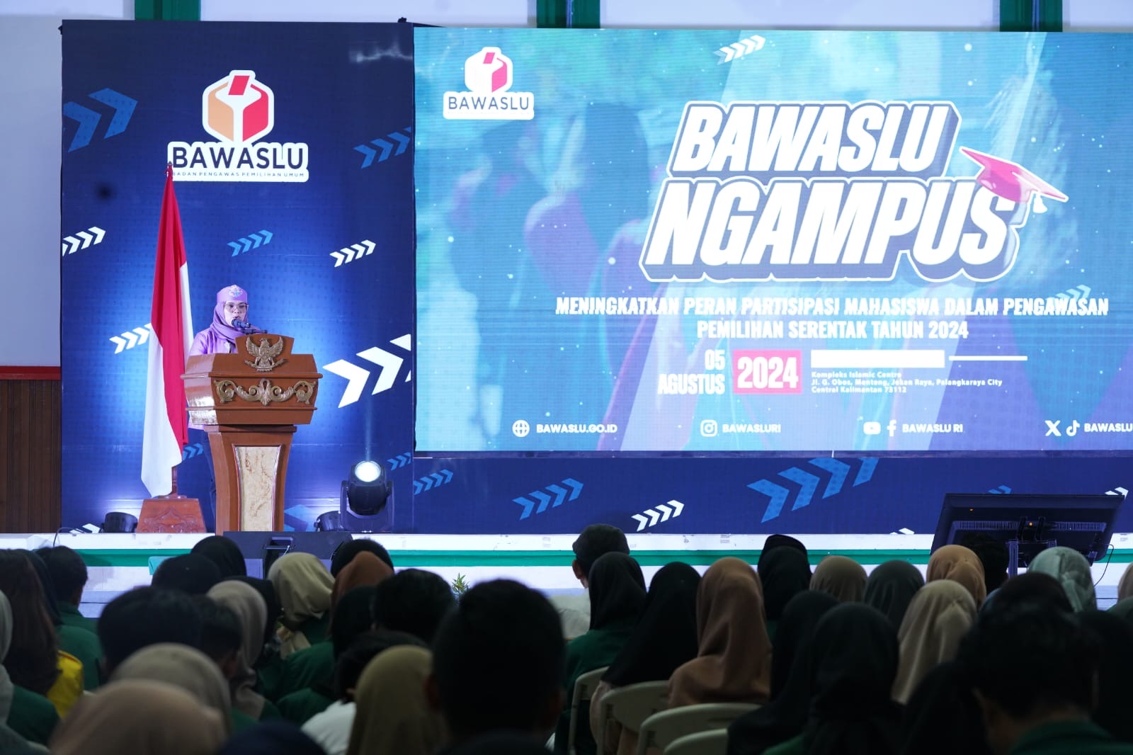 Anggota Bawaslu Lolly Suhenty dalam Kick Off Bawaslu Ngampus di Kampus IAIN Palangka Raya, Kalimantan Tengah, Senin, (5/8/2024)/foto: Publikasi dan Pemberitaan Bawaslu.