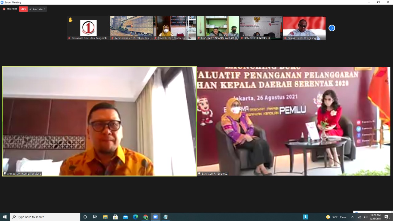 Jakarta, Badan Pengawas Pemilihan Umum- Ketua Komisi II DPR RI Ahmad Doli Kurnia Tanjung dan Menteri Dalam Negeri (Mendagri) Tito Karnavian menyambut baik kehadiran buku Kajian Evaluatif Penanganan Pelanggaran Pilkada 2020 yang ditulis oleh Anggota Bawaslu Ratna Dewi Pettalolo dan Dosen Hukum Universitas Andalas Khairul Fahmi secara daring (dalam jaringan), Kamis (26/8/2021).