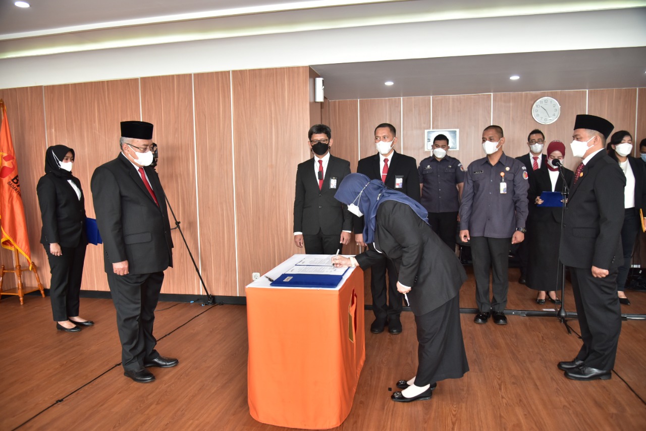 Sekjen Bawaslu Gunawan Suwantoro (dua dari kiri) menyaksikan terlantik menandatangani dokumen pelantikan di Kantor Bawaslu, Jalan MH. Thamrin Jakarta, Senin (27/12/2021)/foto: Publikasi dan Pemberitaan Bawaslu