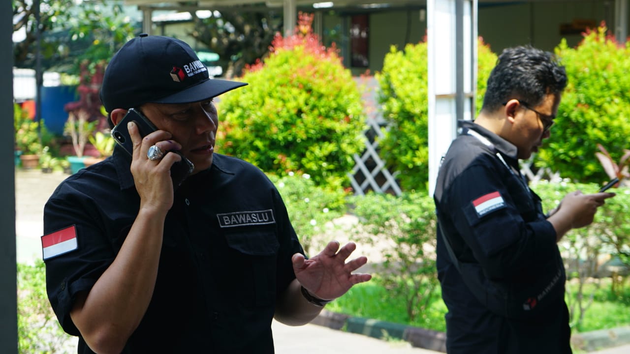 /Ketua Bawaslu, Abhan saat melakukan kunjungan di Semarang sambil memantau perkembangan situasi via telepon selular/ Foto: Baguz Pradana