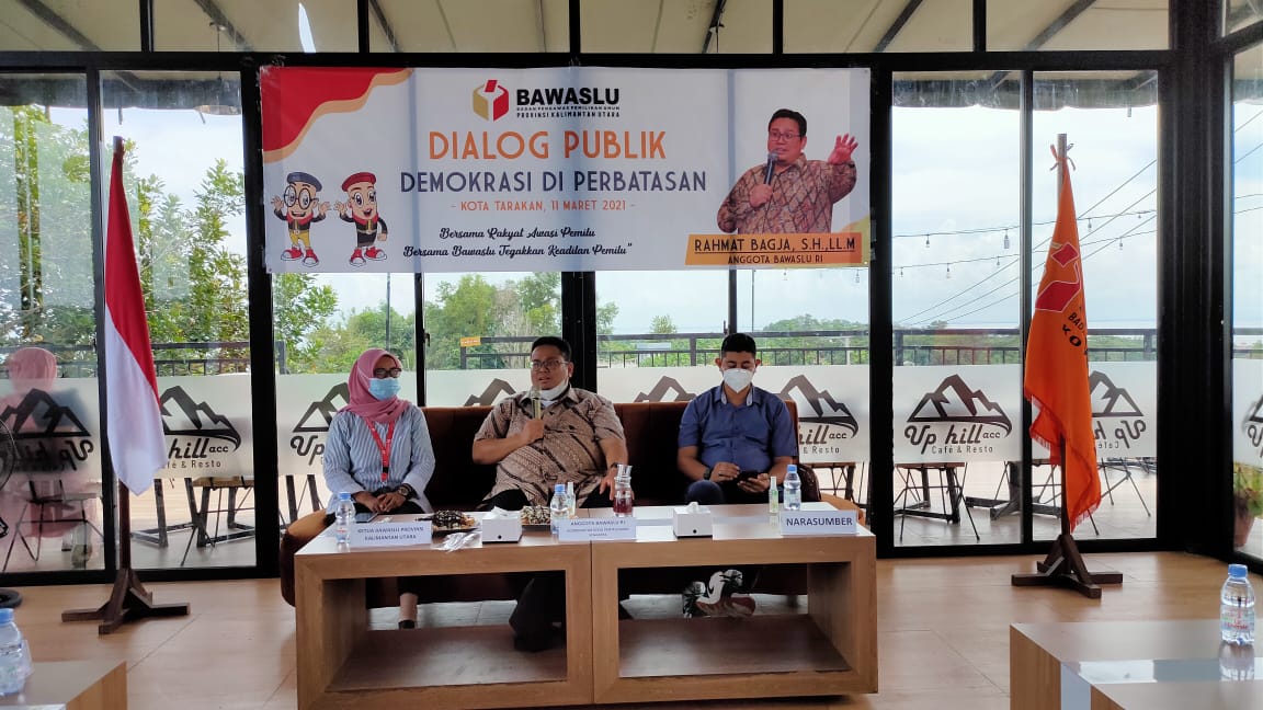 Anggota Bawaslu Rahmat Bagja menjadi narasumber dalam Dialog Publik bertakjut Demokrasi di perbatasan di Tarakan, Kalimantan Utara, Kamis (11/3/2021). (Foto : Humas Kaltara)