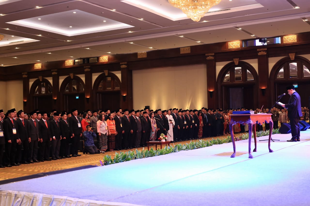 Jakarta, Badan Pengawas Pemilihan Umum - Ketua Bawaslu RI Abhan melantik 1.914 Anggota Bawaslu Kabupaten/Kota se-Indonesia masa jabatan 2018-2023, Rabu (15/8/2018) di Jakarta. Pelantikan tersebut  memecahkan Rekor Museum Rekor Indonesia (MURI) sebagai Pelantikan Pejabat Publik Terbanyak.
