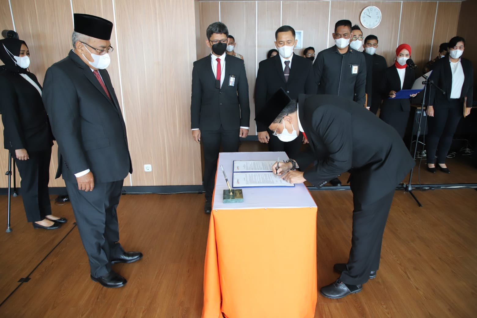 Sekretaris Jenderal Bawaslu Gunawan Suswantoro menjadi saksi penandatanganan berkas pelantikan 69 Pejabat Administrator Bawaslu pusat hingga Kabupaten/Kota di Gedung Bawaslu, Jumat (13/5/2022)/ Foto : Tim Publikasi dan Pemberitaan Bawaslu RI