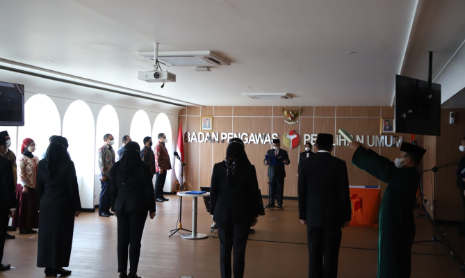 Jakarta, Badan Pengawas Pemilihan Umum - Sekretaris Jenderal Bawaslu Gunawan Suswantoro melantik dan mengangkat 69 yang terdiri dari Pejabat Administrator dan Pejabat Pengawas di lingkungan Bawaslu. Dalam sambutannya Gunawan berpesan pelantikan ini dalam rangka kesiapan Bawaslu menghadapi tahapan Pemilu Serentak 2024.