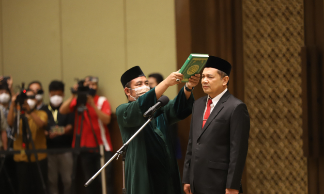 Jakarta, Badan Pengawas Pemilihan Umum- Ketua Bawaslu Rahmat Bagja melantik sekaligus mengambil sumpah jabatan Ichsan Fuady sebagai Sekretaris Jenderal (Sekjen) Bawaslu. Dalam amanatnya, Bagja meminta Ichsan selaku Sekjen Bawaslu yang baru bekerja keras untuk membangun kinerja organisasi sebagai bentuk dukungan penuh pelaksanaan pengawasan pemilu.
