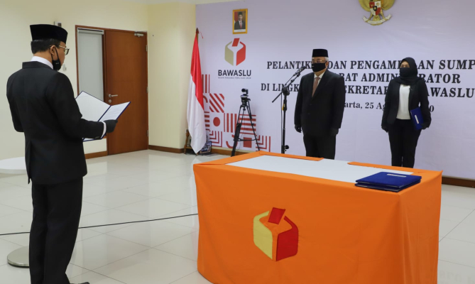 Adapun pelantikan pejabat administrator kali ini merupakan pelantikan pertama di tengah pandemik. Hadir sekaligus menjadi saksi dalam pelantikan antara lain Kepala Biro (Karo) Teknis Penyelenggaraan Pengawasan Pemilu (TP3) Bawaslu La Bayoni, Karo Administrasi Bawaslu Adhi Santoso, Karo Hukum, Humas, dan Pengawasan Internal Ferdinand Eskol Tiar Sirait.