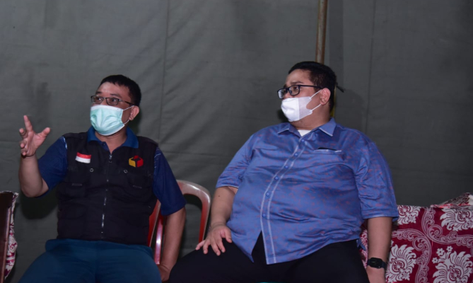 Bagja berbincang dengan Ketua KPPS PSU di TPS 19 Desa Mendalo Darat, Kecamatan Jambi Luar Kota, Kabupaten Muaro Jambi yang sedang bertugas dalam persiapan pelaksanaan PSU Pilgub Jambi , Rabu 26 Mei 2021/Foto: Pemberitaan dan Publikasi Bawaslu