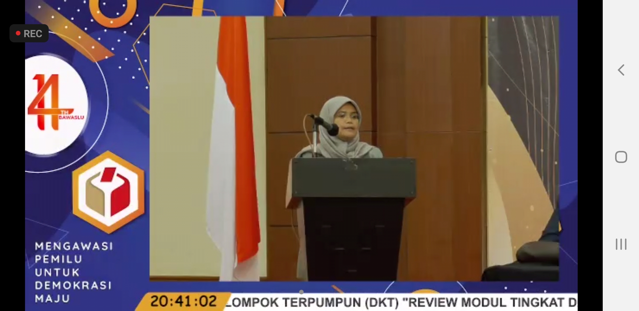Anggota Bawaslu Lolly Suhenty berharap Pusat Penelitian dan Pengembangan, Pendidikan dan Pelatihan (Puslitbangdiklat) Bawaslu dapat menjadi tempat pengembangan diri. Hal tersebut dikatakannya saat Diskusi Kelompok Terpumpun (DKT) Review Modul Pelatihan Tingkat Dasar Pelatihan Pengawas Pemilu di Jakarta, Senin, (18/4/2022). foto: tangkapan layar zoom