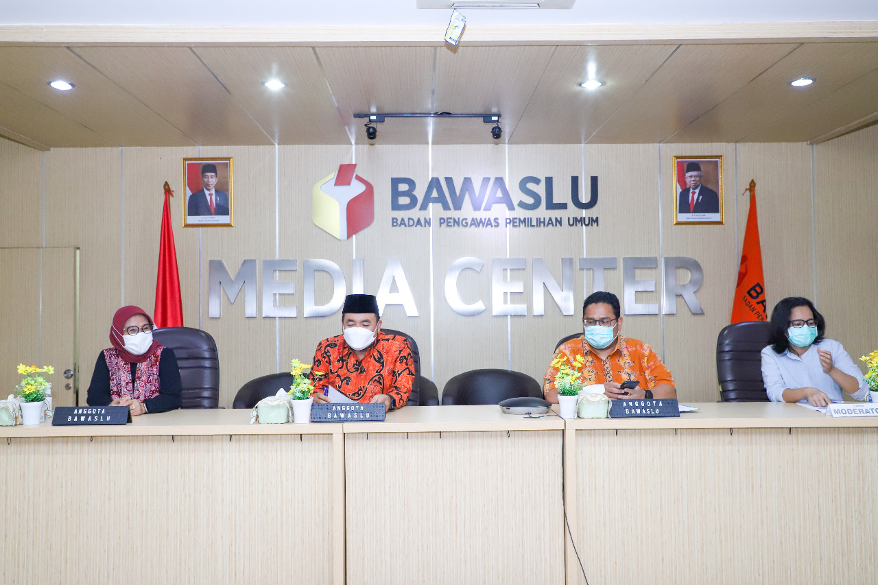 Tiga Anggota Bawaslu dari kiri ke kanan: Ratna Dewi Pettalolo, M Afifuddin, dan Rahmat Bagja didampingi Tim Asistensi Bawaslu Deytri Aritonang saat memberikan keterangan pers Peluncuran TPS Rawan 2020 di Media Center Bawaslu, Jakarta, Senin 7 Desember 2020/Foto: Humas Bawaslu RI