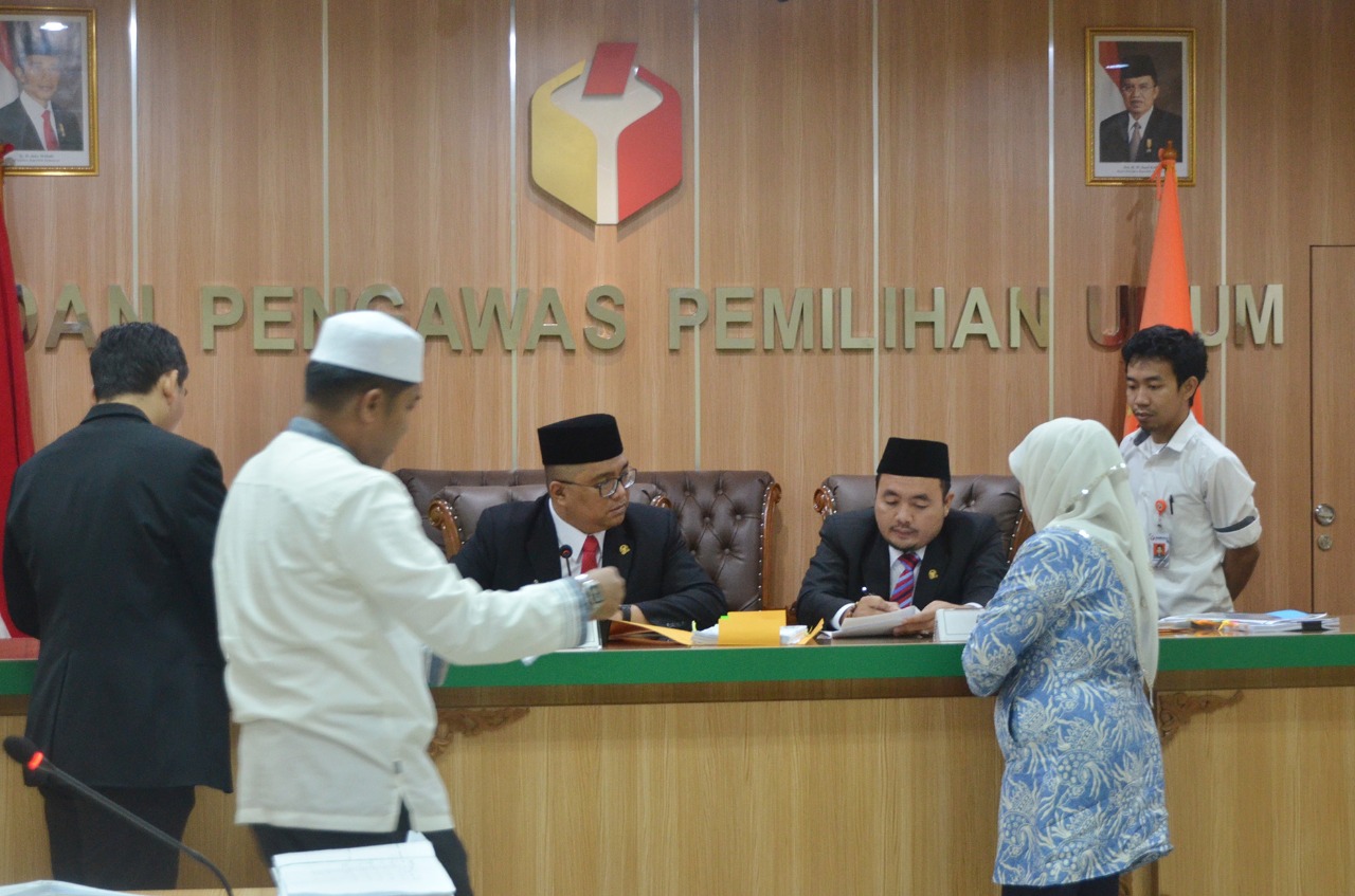 Ketua Majelis Fritz Edward Siregar dan Anggota Majelis M Afifuddin mendengarkan keterangan pokok laporan caleg DPD RI dapil Sumut untuk dugaan kecurangan di Kabupaten Nias Selatan di Ruang Sidang Bawaslu, Rabu 19 Juni 2019/ Foto Cristina Kartika