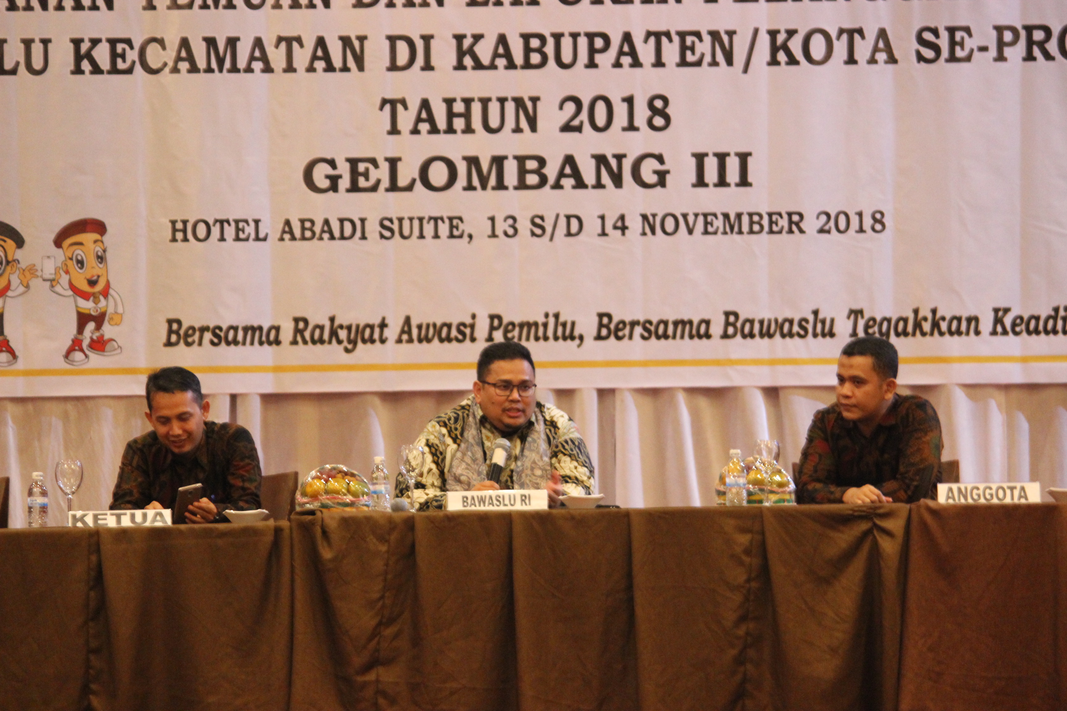Hal tersebut disampaikan Anggota Bawaslu RI Rahmat Bagja pada kegiatan Rapat Kerja Teknis Penanganan Temuan dan Laporan Pelanggaran Pemilu Bagi Panwaslu Kecamatan Di Kabupaten/Kota Se-Provinsi Jambi Tahun 2018, Selasa (13/11/2018).