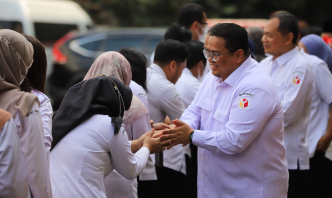 Jakarta, Badan Pengawas Pemilihan Umum- Bawaslu menggelar apel pasca Lebaran Idul Fitri 1444 H. Pada kesempatan itu, Ketua Bawaslu Rahmat Bagja meminta agar jajaran Bawaslu di semua tingkatan untuk bersiap menghadapi persoalan dalam tahapan pemilu, baik berupa penanganan pelanggaran maupun penyelesaian sengketa proses pemilu.