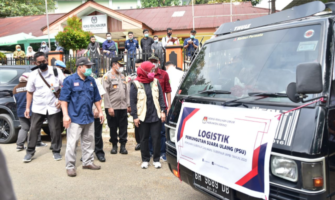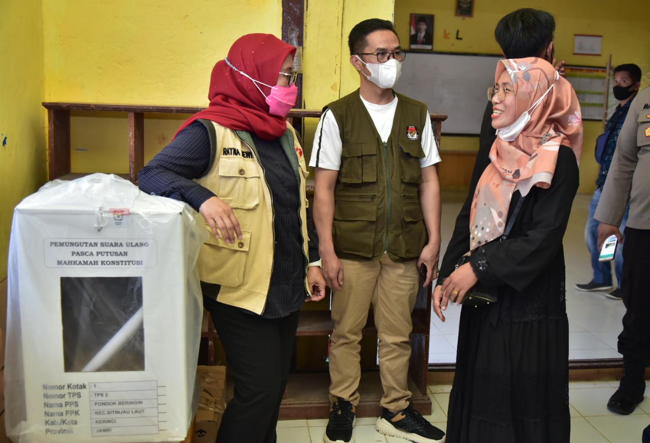 Kerinci, Badan Pengawas Pemilihan Umum - Sehari jelang pemungutan suara ulang (PSU) Pemilihan Gubernur dan Wakil Gubernur (Pilgub) Jambi 2020, Anggota Bawaslu Ratna Dewi Pettalolo memantau langsung persiapan tempat pemungutan suara (TPS) di Kota Sungai Penuh dan Kabupaten Kerinci. Dia pun mengingatkan penerapan protokol kesehatan (prokes) penyebaran penularan covid-19 serta alur pemilihan yang sesuai aturan.