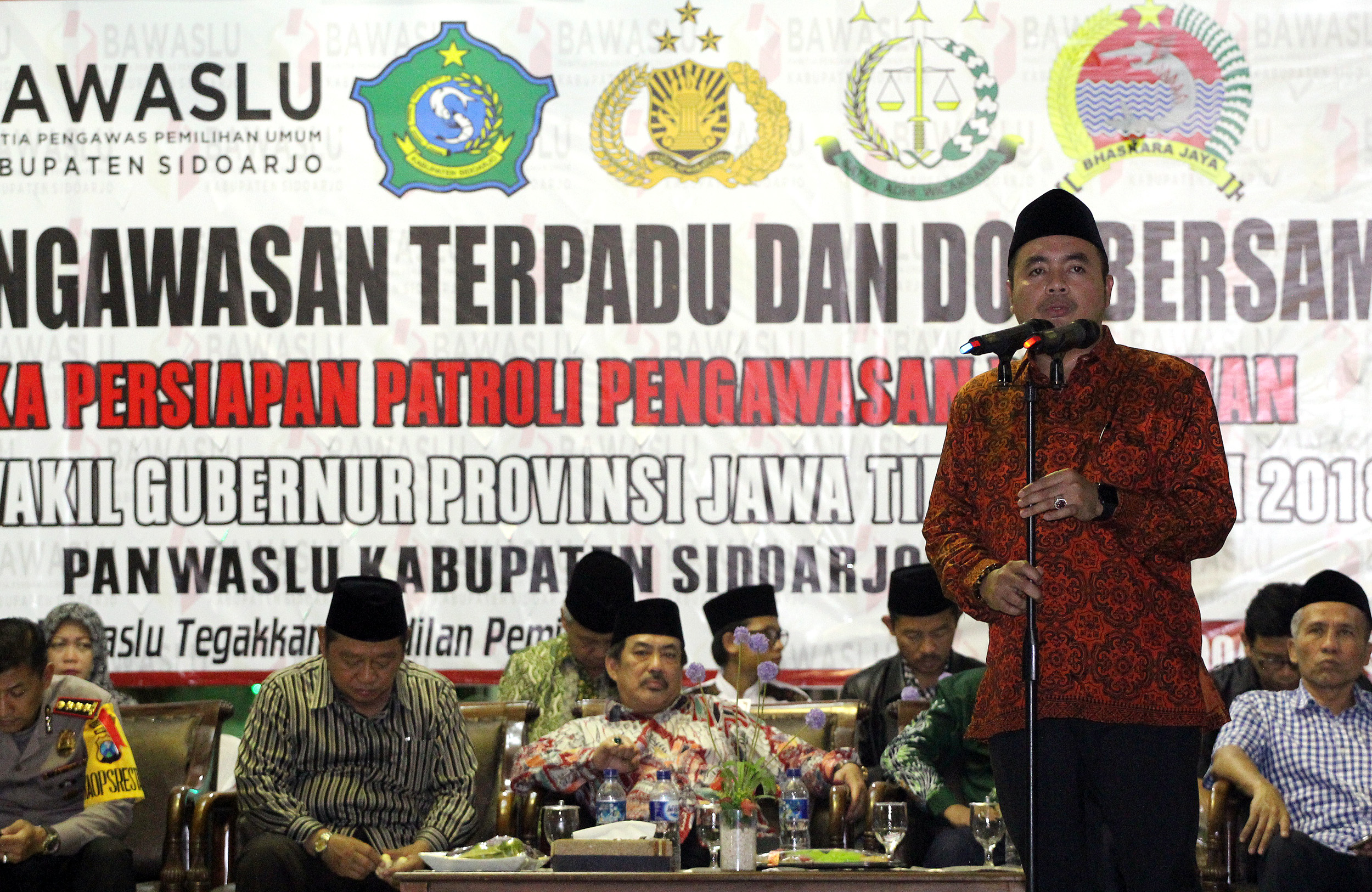 Sementara itu Bupati Sidoarjo SaifulIlah dalam sambutannya menyatakan, pihaknya percaya masyarakat Sidoarjo mampu menunjukkan kedewasaan dalam Pilkada ini, sehingga terwujud kondisi yang aman dan kondusif. “Peran penting Panwaslu dalam melakukan pengawasan serta selalu menjaga netralitas dalam pilkada akan berimbas pada kondisi Sidoarjo yang aman dan kondusif,” ucap Saifullah.