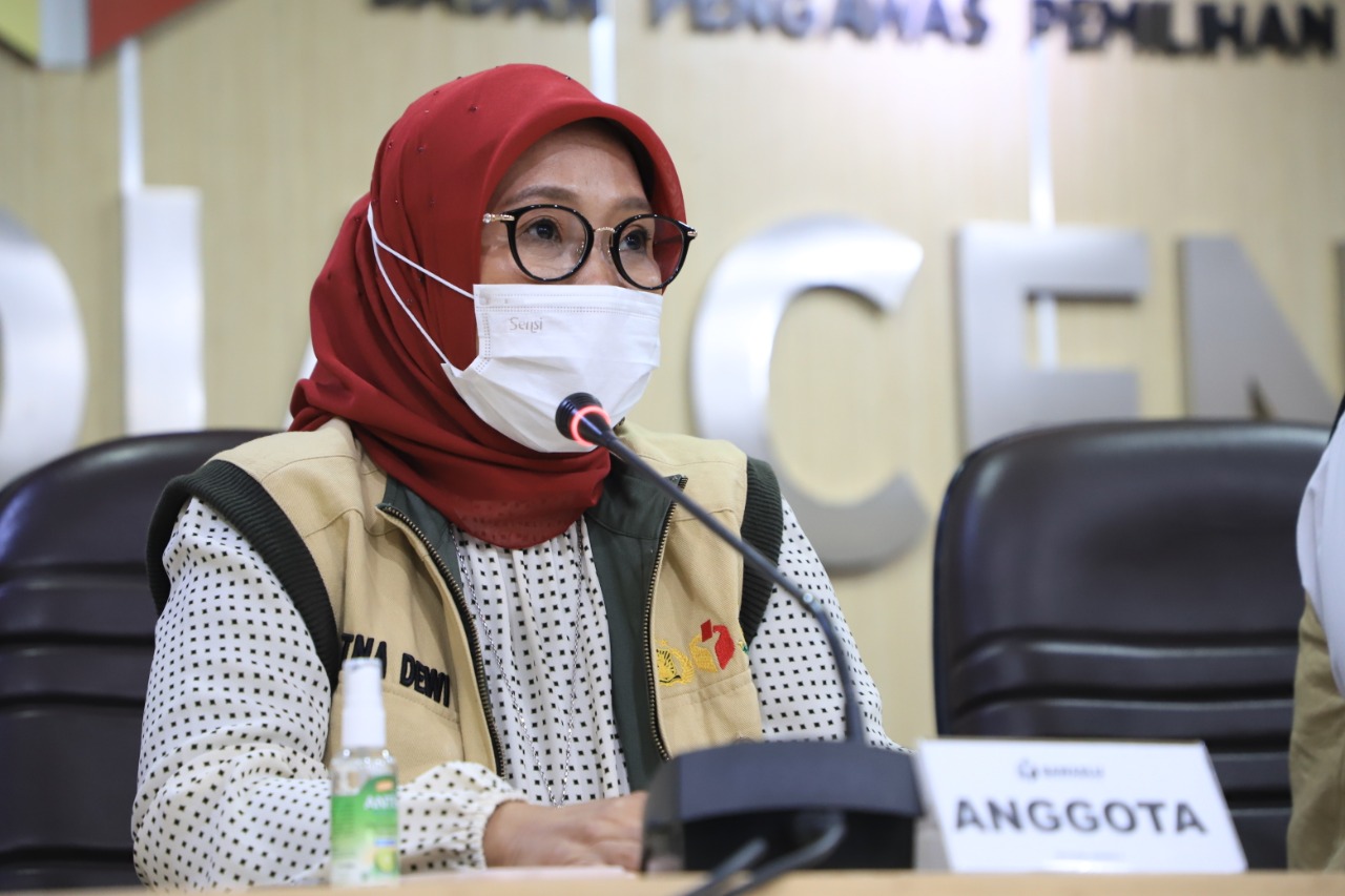 Anggota Bawaslu Ratna Dewi Pettalolo saat konferensi pers kegiatan Rakornas Sentra Gakkumdu di Jakarta, Kamis (3/12/2020)/foto: Irwan (Humas Bawaslu RI).