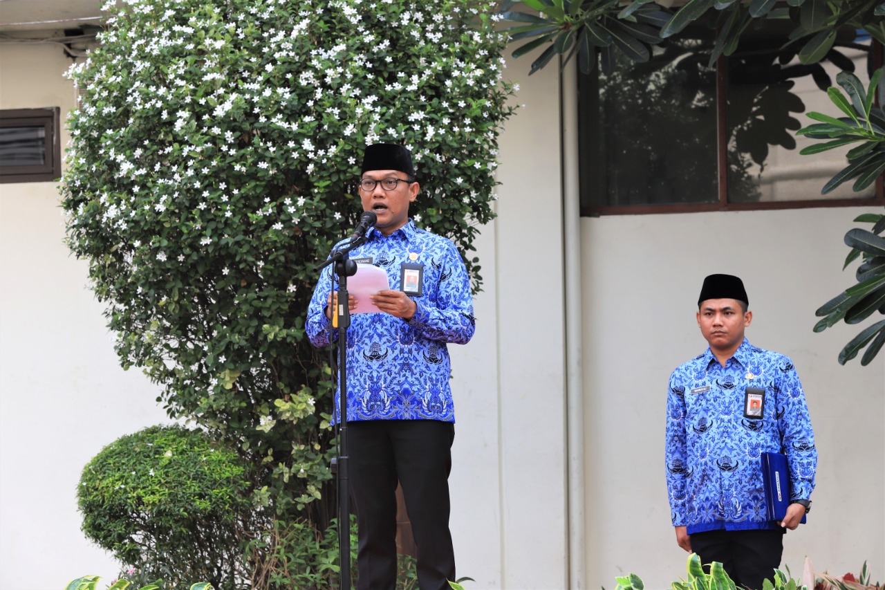 Kepala Biro Hukum, Humas, dan Pengawasan Internal (H2PI) Bawaslu Ferdinand Eskol Tiar Sirait saat menjadi pembina upacara memberikan pidato