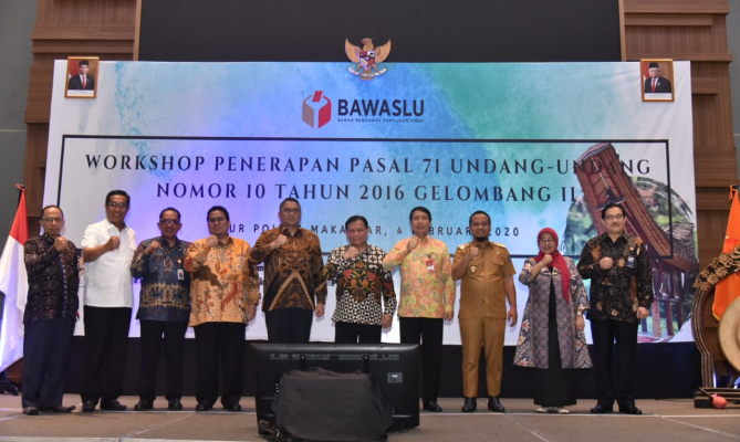 Makassar, Badan Pengawas Pemilihan Umum - Workshop penerapan Pasal 71 Undang Undang Nomor 10 Tahun 2016 Tentang Pemilihan Gubernur, Bupati dan Walikota Gelombang Kedua berlangsung penuh antusias. Wakil Gubernur Sulawesi Selatan Andi Sudirman Sulaiman pun mengapresiasi adanya lokakarya ini sebagai sinergitas jelang Pilkada serentak 2020.