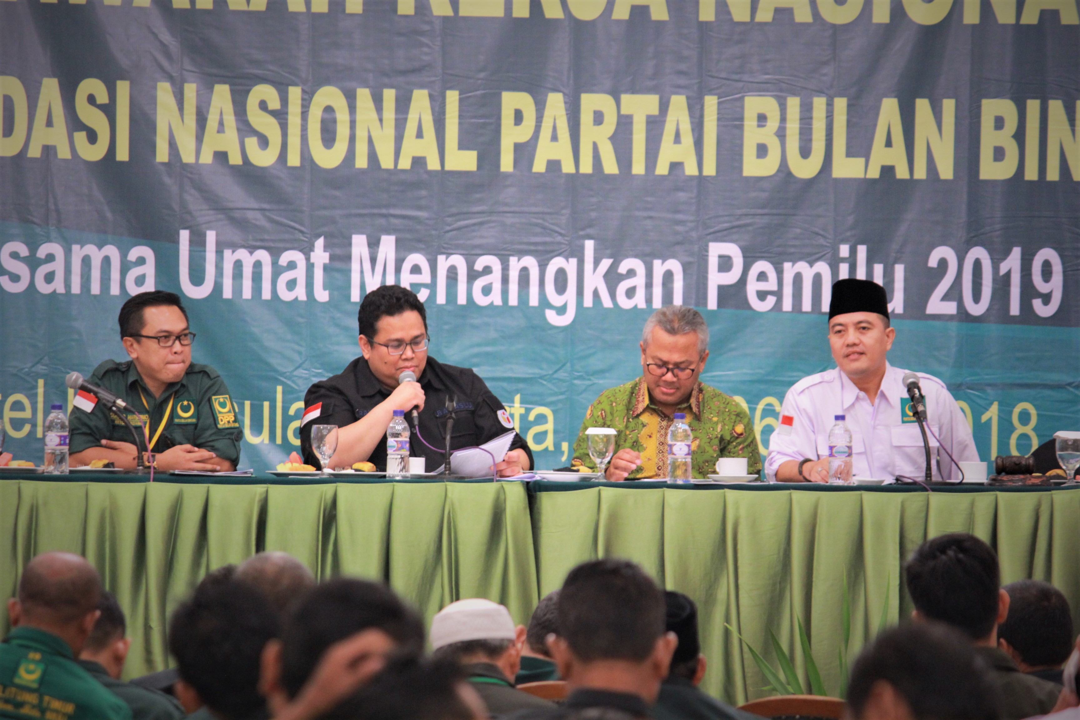Anggota Bawaslu RI Rahmat Bagja dan Ketua KPU RI Arief Budiman saat menjadi narasumber dalam acara Musyawarah Kerja Nasional II (MUKERNAS) Konsolidasi Nasional Partai Bulan Bintang (PBB).