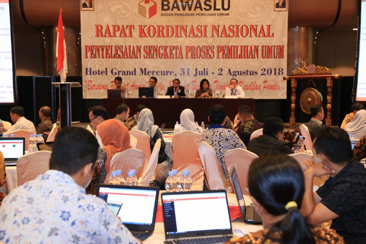 Koordinator Divisi Penyelesaian Sengketa, Rahmat Bagja, mengatakan Rakor ini bertujuan menyamakan persepsi terkait isu publik pascaputusan Mahkamah Konstitusi tentang perubahan hari kelender menjadi hari kerja serta kewajiban partai politik untuk tidak menyertakan mantan terpidana, bandar narkoba,  kejahatan seksual terhadap anak,  dan korupsi. Selain itu, sambungnya, Rakor ini untuk mempersiapkan Bawaslu Provinsi dalam sengketa pemilu. Ia, mengingatkan agar Provinsi tetap berkoordinasi dengan Bawaslu RI dalam pelaksanaan penyelesaian sengketa.