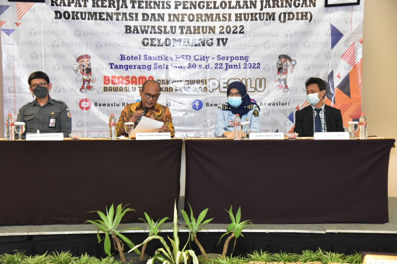 Tangerang Selatan, Badan Pengawas Pemilihan Umum-  Bawaslu menargetkan mendapatkan peringkat pertama Jaringan Dokumentasi & Informasi Hukum Nasional (JDIHN) award dari Badan Pembinaan Hukum Nasional (BPHN). Deputi Bidang Administrasi Ferdinand Eskol Tiar Sirait menyatakan optimis Bawaslu dapat meraih target tersebut.