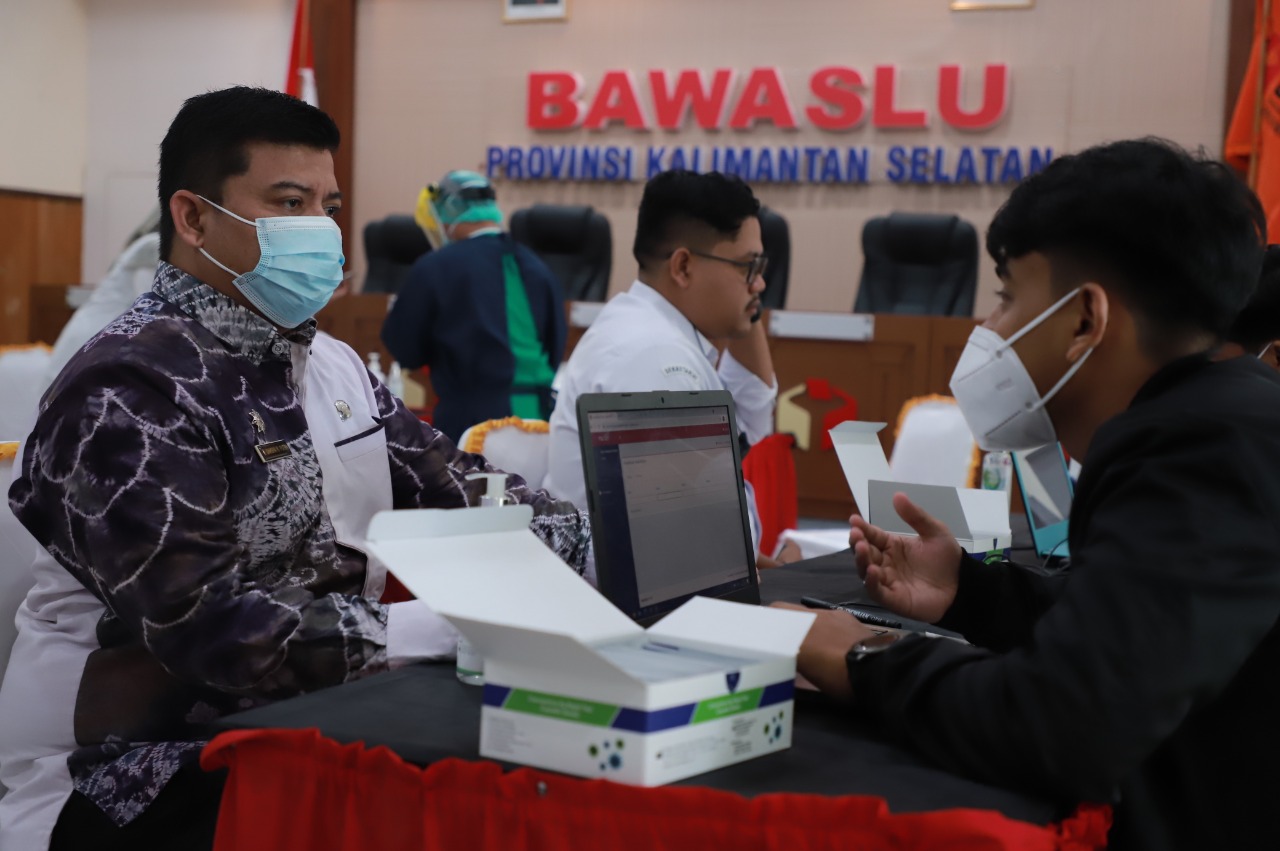 Bawaslu Kalsel tengah melakukan tes antigen jelang penyelenggaraan Pemungutan Suara Ulang Pilgub Kalsel 2020 di Kantor Bawaslu Kalsel pada Rabu 2 Juni 2021/ Foto: Henry (Humas Bawaslu Kalsel)