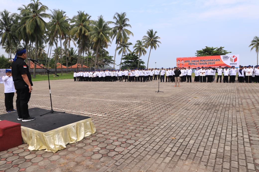 Banten, Badan Pengawas Pemilihan Umum– Ketua Bawaslu RI Abhan memimpin apel siaga pengawasan Pemilu 2019 di Anyer Banten, Jumat (05/04/2019). Dalam pidatonya, Abhan mengingatkan pentingnya menjaga integritas sebagai pengawas Pemilu.