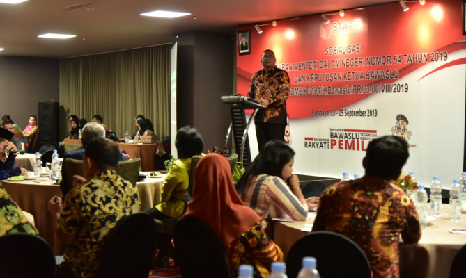 Anggota Bawaslu Fritz Edward Siregar saat memberikan pengarahan soal NPHD di Surbaya, Selasa (24/9/2019) malam/Foto: Reyn Gloria