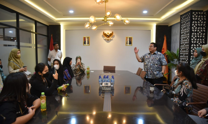Dalam kesempatan ini, Bagja mengajak para mahasiswa untuk melihat-lihat ruangan dalam gedung kantor Bawaslu. Dirinya menunjukkan ruang rapat para komisioner, ruang virtual, ruang podcast, dan berakhir di ruang persidangan. Di ruang terakhir ini pula, Bagja mempersilakan mahasiswa untuk mencoba simulasi persidangan.