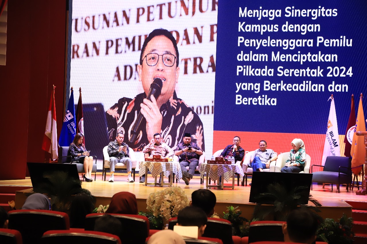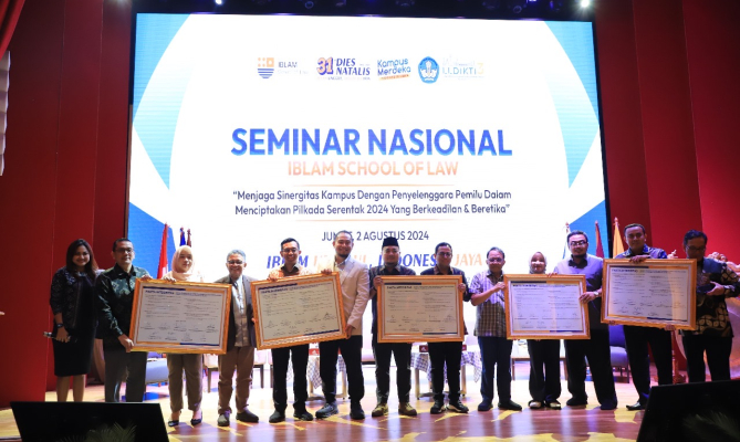 Dalam kesempatan ini Ketua Yayasan STIH IBLAM Rahmat Dwi Putranto mengapresiasi kerja-kerja penyelenggara Pemilu yang telah terselesaikan. Namun dia melihat terdapat dinamika yang menarik atas Pemilihan serentak tahun ini.