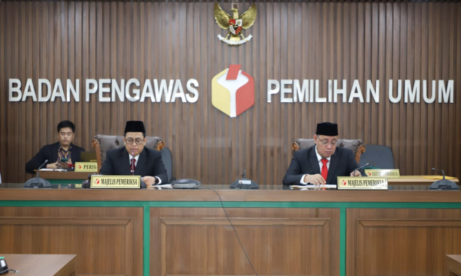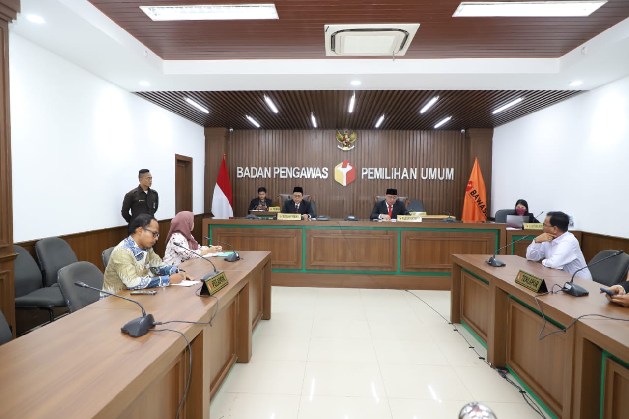 Jakarta, Badan Pengawas Pemilihan Umum- Majelis Pemeriksa Bawaslu tidak menemukan adanya unsur dugaan pelanggaran administrasi pemilu dari tiga laporan dugaan pelanggaran Pemilu 2024. Putusan dibacakan oleh dua majelis pemeriksa Bawaslu; Puadi dan Herwyn JH Malonda di Ruang Sidang Bawaslu RI, Jakarta, Kamis (7/12/2023).