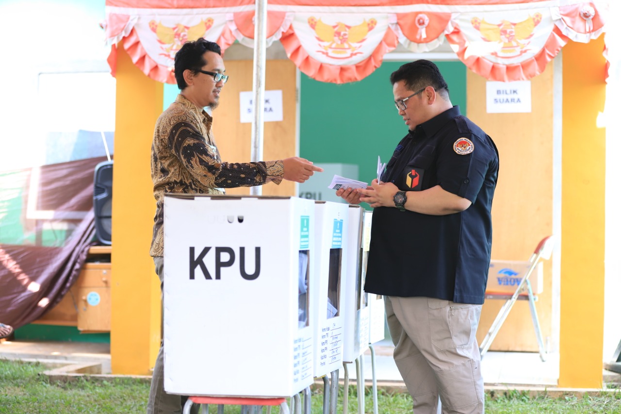 Tangerang Selatan, Badan Pengawas Pemilihan Umum - Anggota Bawaslu RI Rahmat Bagja melakukan pencoblosan di TPS 118, Perumahan Dhaya Pesona, Jombang, Tangerang Selatan, Banten. Bersama sang istri Ita Kurniasih, Bagja tiba di TPS sekitar pukul 09.00 WIB. Di TPS tersebut total 268 pemilih yang terdiri dari 125 pemilih laki-laki dan 143 pemilih perempuan. Sementara itu, jumlah daftar pemilih khusus (DPK) terdapat 6 orang, ditambah daftar pemilih tambahan (DPTb) ada sekitar 7 orang. Tiba di TPS, Bagja mengantri di TPS bersama warga lainnya. Tidak ada perlakukan khusus terhadap pria kelahiran Medan, 10 Februari 1980 itu. Bagja mengapresiasi terhadap Kelompok Penyelenggara Pemungutan Suara (KPPS) di lokasi tersebut. Dia bilang, selain karena tempat pencoblosan yang tertutup, petugas selalu mengingatkan pemilih untuk memeriksa surat suara mereka. "Hati-hati cara melipat. Para petugas mengingatkan agar melipat kembali, seperti lipatan awal," kata Bagja saat ditanya wartawan usai menyoblos, Rabu (17/4/2019). Dia juga mengingatkan, para petugas KPPS memberi tahu kepad warga untuk memasukan surat suara sesuai kotak suara masing-masing. "Saya juga hampir salah (memasukkan) antara kotak suara berwana merah dan hijau misalnya, salah memasukan kardus. Prosedurnya harus dilakukan secara tepat, nanti kalau surat suara masuk ke kotak suara lain akan menjadi permasalahan dalam penghitungannya," imbuhnya. Penulis: Robi Ardianto