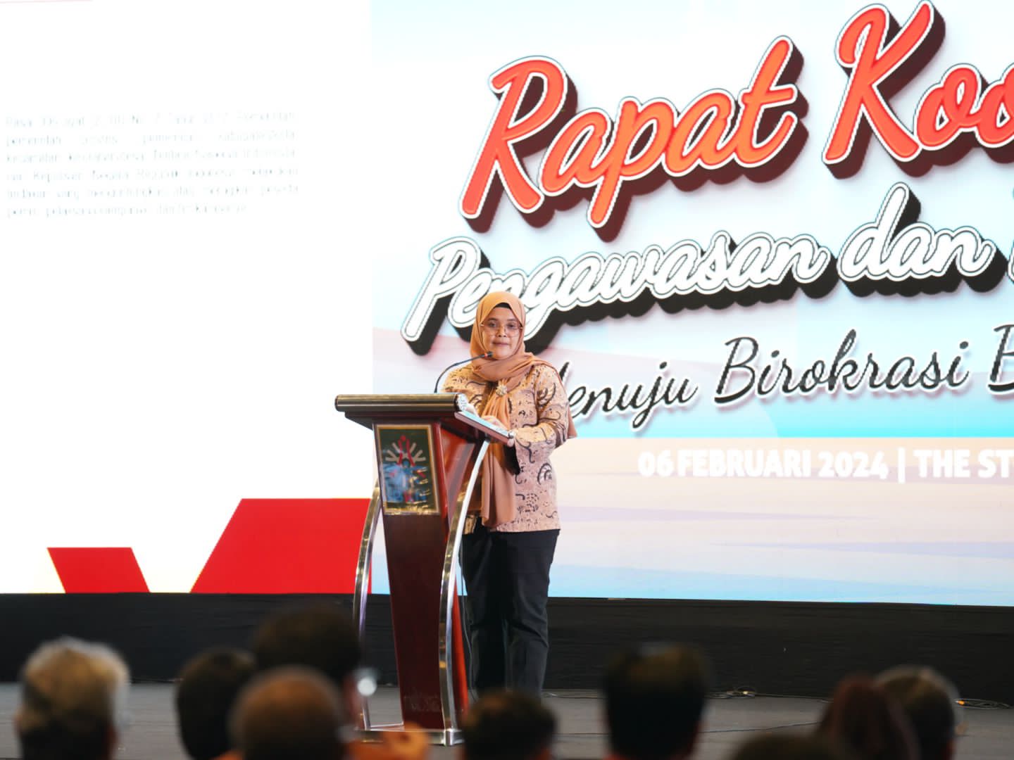 Anggota Bawaslu Lolly Suhenty saat menjadi pembicara dalam Rapat Koordinasi (Rakor) Pengawasan dan Pengendalian Menuju Birokrasi Berkelas Dunia yang diselenggarakan Badan Kepegawaian Negara (BKN) di Bali, Selasa (6/1/2024).