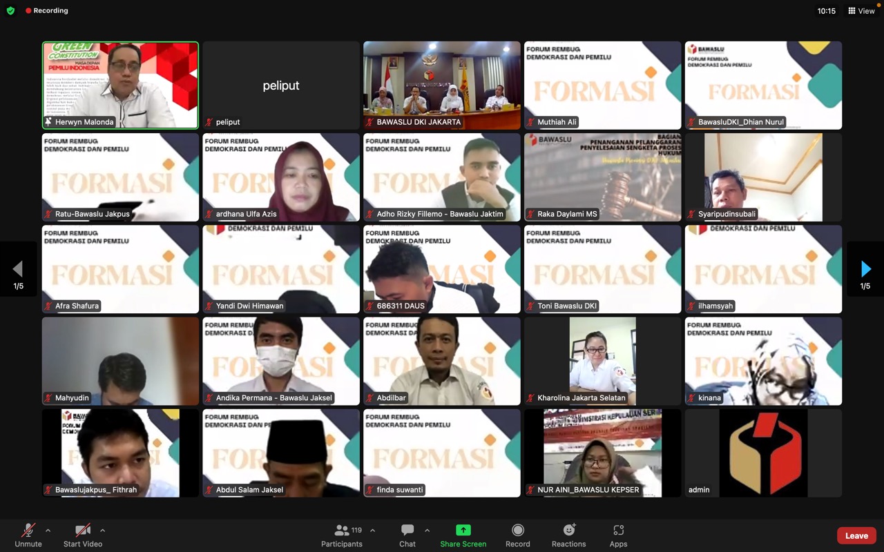 Tangkapan layar Forum Rembug Demokrasi & Pemilu (FORMASI) secara daring, Rabu (8/6/2022)/foto: Publikasi dan Pemberitaan Bawaslu