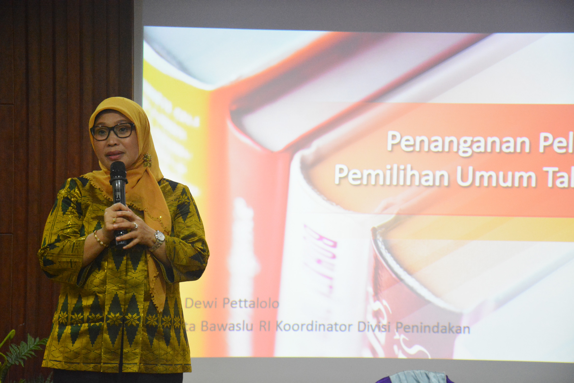 Dewi menjelaskan, pengawas Pemilu sejak awal harus paham dan mampu mendeteksi subjek dan objek hukum yang diatur dalam undang-undang dan memahami tentang peristiwa, perbuatan, keadaan, larangan, dan sanksi.