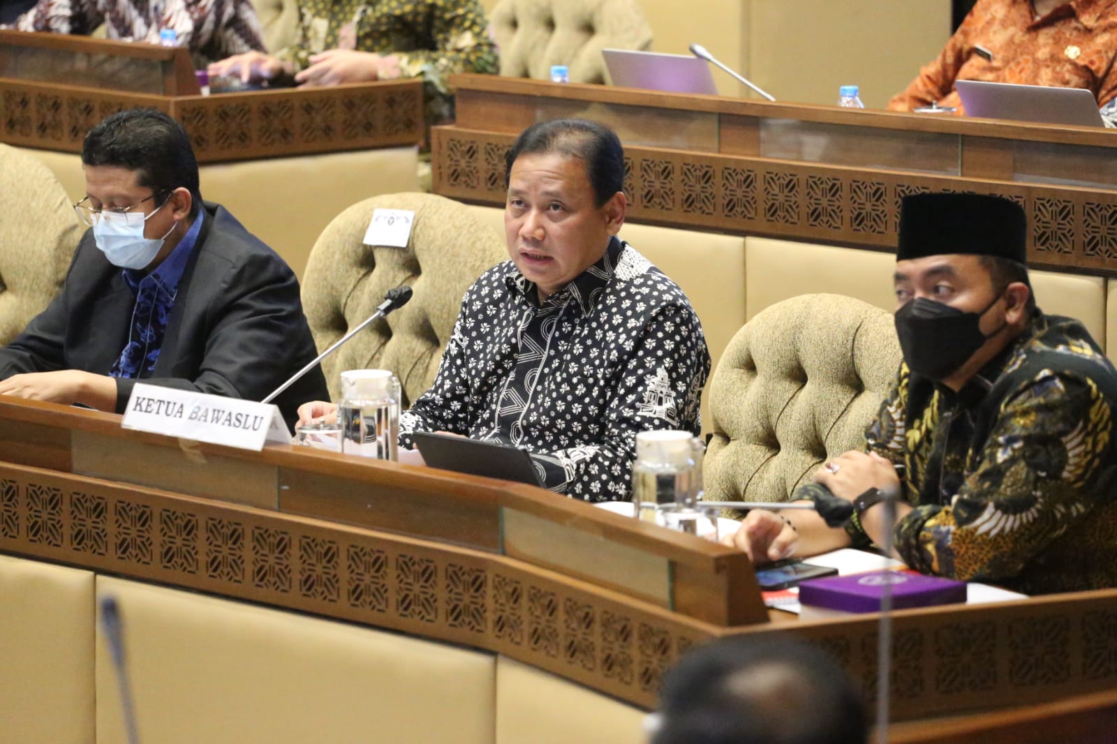 Jakarta, Badan Pengawas Pemilihan Umum- Bawaslu menghadiri rapat dengar pendapat (RDP) bersama Komisi II DPR RI, Kementerian Dalam Negeri (Kemendagri), KPU, dan DKPP dengan agenda mendengarkan penyampaian kesiapan Pemilu dan Pemilihan Serentak 2024. Dalam kesempatan ini, Bawaslu menyampaikan empat rekomendasi penataan Pemilu dan Pemilihan Serentak 2024.