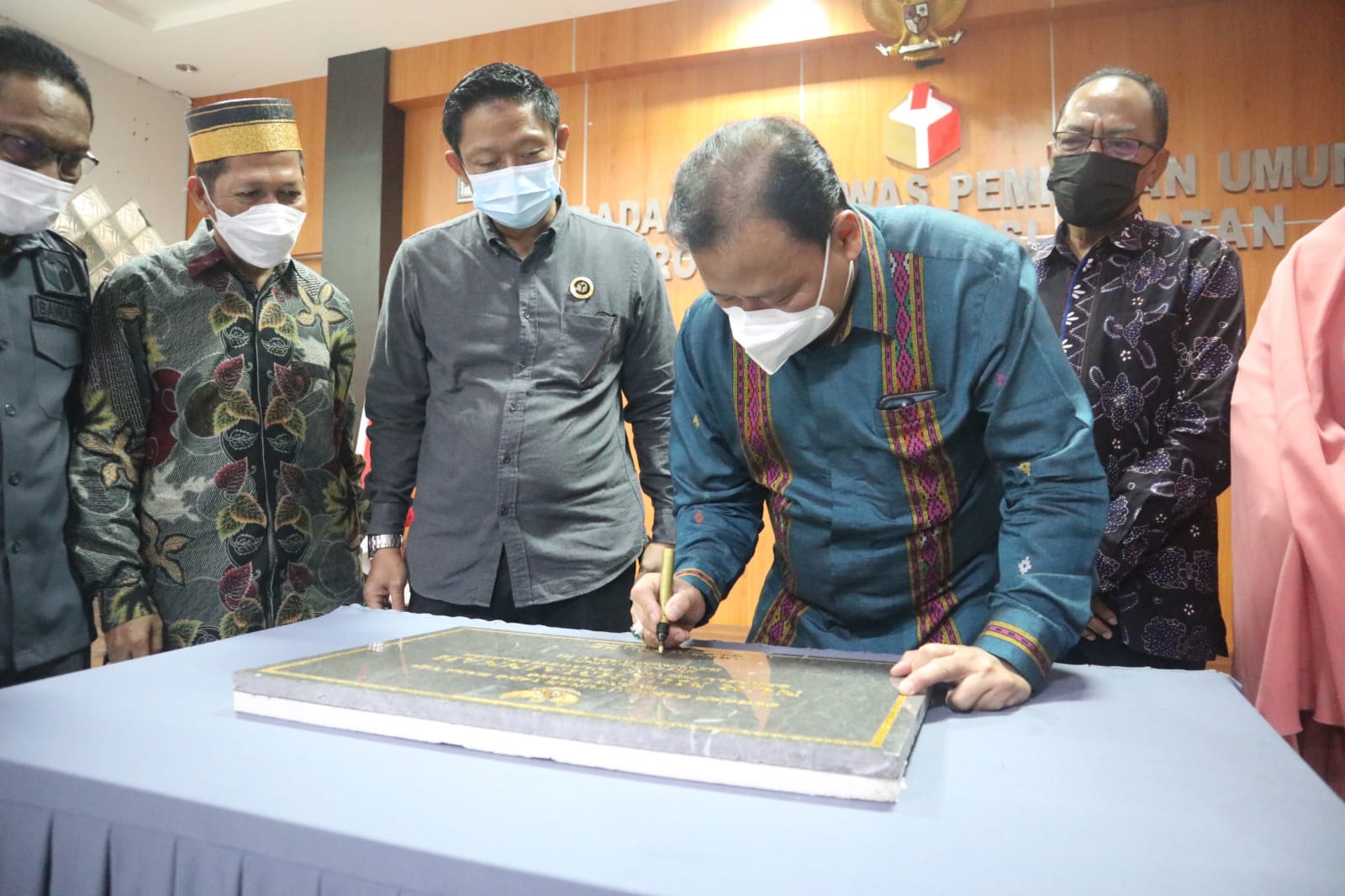 Ketua Bawaslu Abhan saat meresmikan ruang sidang Bawaslu Provinsi Sulawesi Selatan bernama Nur Muthmainnah, Senin 31 Januari 2022/Foto: Humas Bawaslu Sulsel