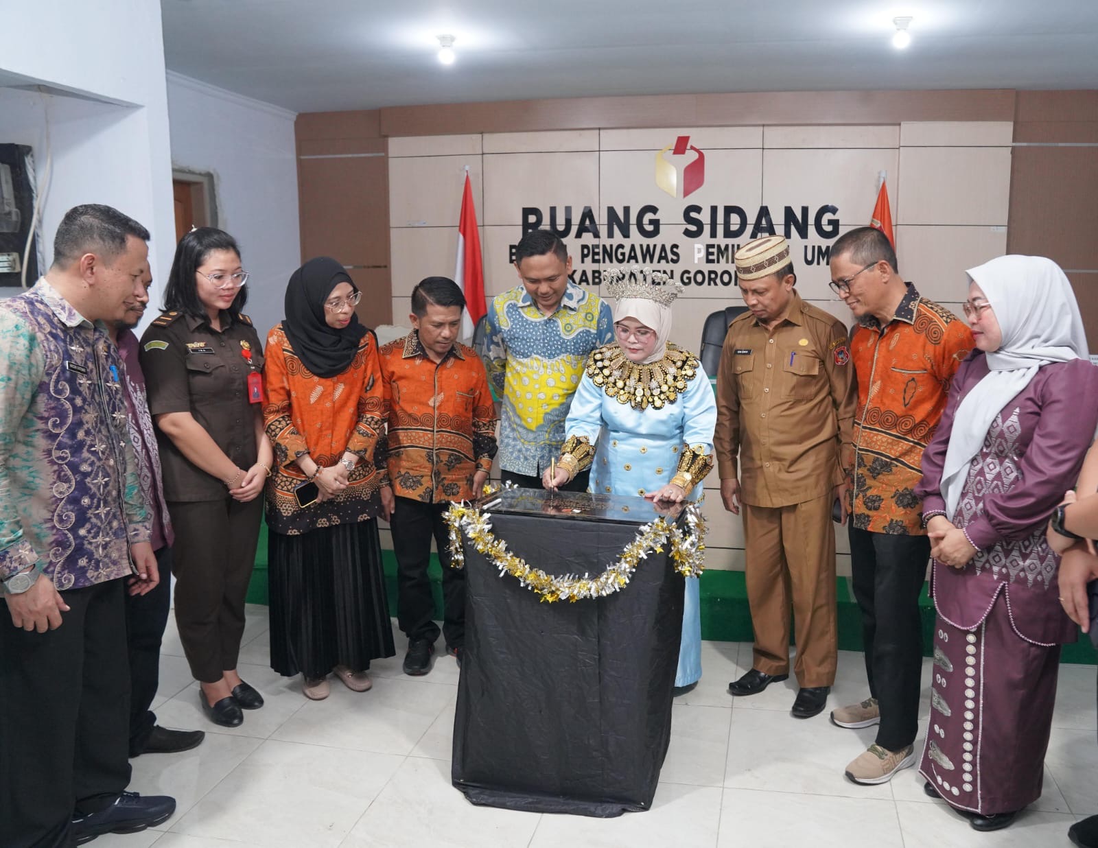 Anggota Bawaslu Lolly Suhenty saat meresmikan ruang sidang di Kantor Bawaslu Kabupaten Gorontalo, Selasa, (25/6/2024).