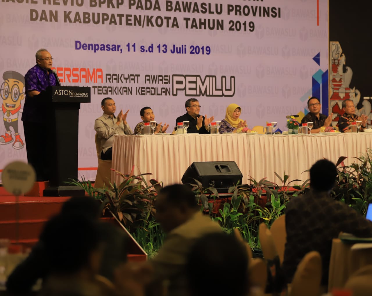 Sekjen Bawaslu Gunawan Suswantoro memberikan sambutan penutup dalam Rapat Koordinasi dan Pembahasan Hasil Review BPKP Kepada Bawaslu Provinsi dan Kabupaten/Kota Tahun 2019 di Denpasar, Bali, Jumat (12/7/2019) malam/Foto: Hendi Purnawan