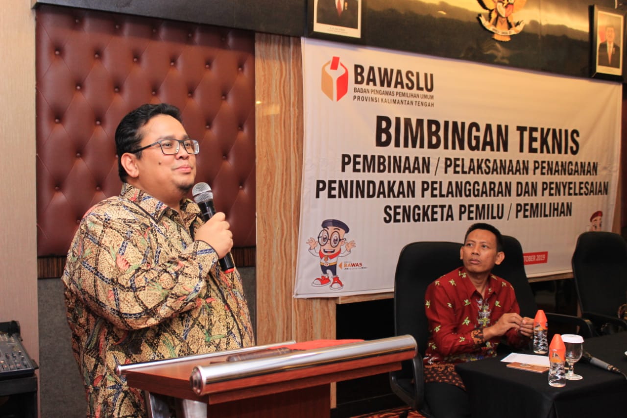 Anggota Bawaslu Rahmat Bagja saat menjadi narasumber dalam acara Bimbingan Teknis Pembinaan/Pelaksanaan Penanganan Penindakan Pelanggaran dan Penyelesaian Sengketa Pemilu/Pemilihan Tahun 2019, di Kalimantan Tengah, pada Selasa 15 Oktober 2019/Foto: Bhakti Satrio