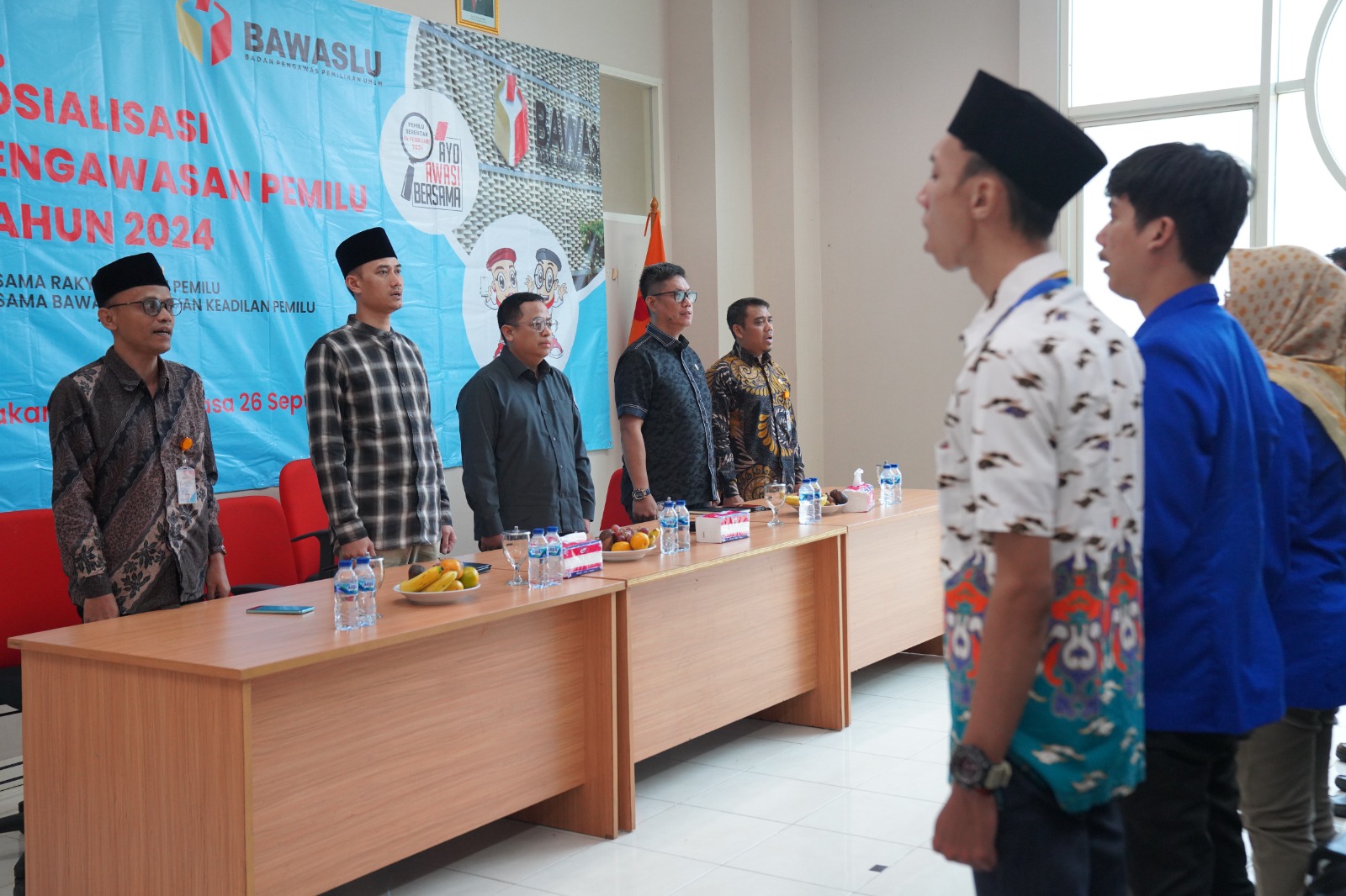 Anggota Bawaslu Puadi (tengah) memberikan sosialisasi pengawasan pemilu kepada para mahasiswa di Jakarta, Selasa (26/9/2023)/foto: Publikasi dan Pemberitaan Bawaslu.