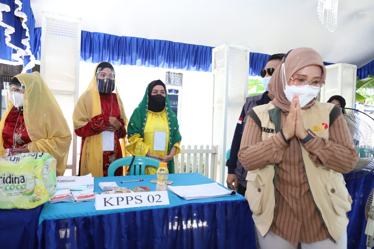 Anggota Bawaslu Ratna Dewi Pettalolo usai berbincang dengan petugas KPPS TPS 34 Kelurahan Pemurus Dalam, Kecamatan Banjarmasin yang memakai baju adat Banjar, Rabu (9/6/2021)/foto: Publikasi dan Pemberitaan Bawaslu RI