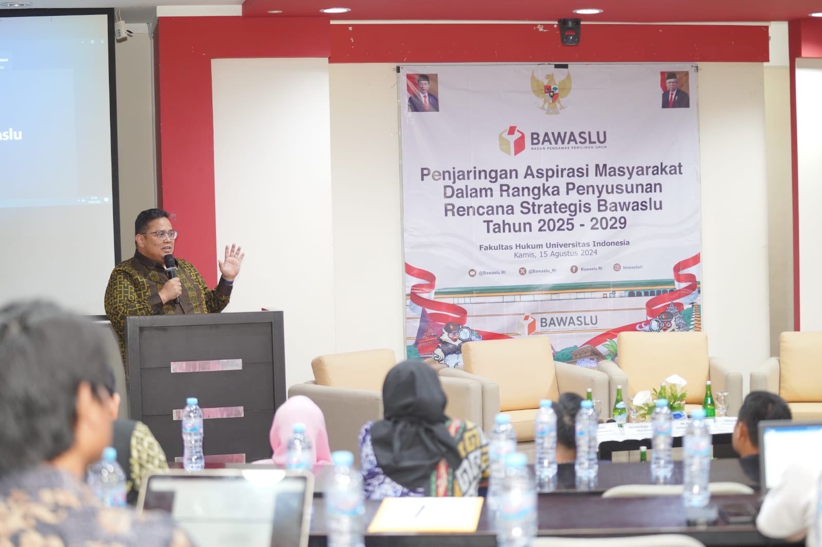 Dekan Fakultas Hukum Universitas Indonesia (FHUI) Parulian Paidi Aritonang mengapresiasi langkah yang dilakukan Bawaslu dengan mengundang akademisi di kampus guna menjaring masukan dalam menyusun rencana strategis Bawaslu tahun 2025-2029 yang akan datang. "Kami berharap berharap dosen-dosen dan mahasiswa FHUI dapat terus berkontribusi dalam pemilu baik dalam hal pemikiran-pemikiran akademik, ataupun teoritis terkait dengan pengawasan pemilu," katanya.