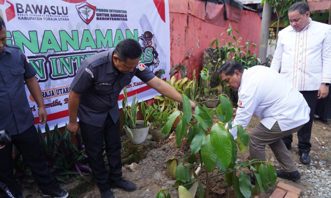 Toraja Utara, Badan Pengawas Pemilihan Umum- Anggota Bawaslu Herwyn JH Malonda mengapresiasi penanaman pohon manggis oleh Bawaslu Tana Toraja. Dia berharap pohon tersebut dapat memberi kesejukan pada pelaksanaan pemilihan kepala daerah di Toraja Utara.