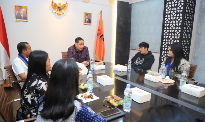 Anggota Bawaslu Herwyn JH Malonda (depan kiri) berbincang dengan GMKI di Kantor Bawaslu, Jakarta, Selasa (8/10/2024)/foto: Publikasi dan Pemberitaan Bawaslu.