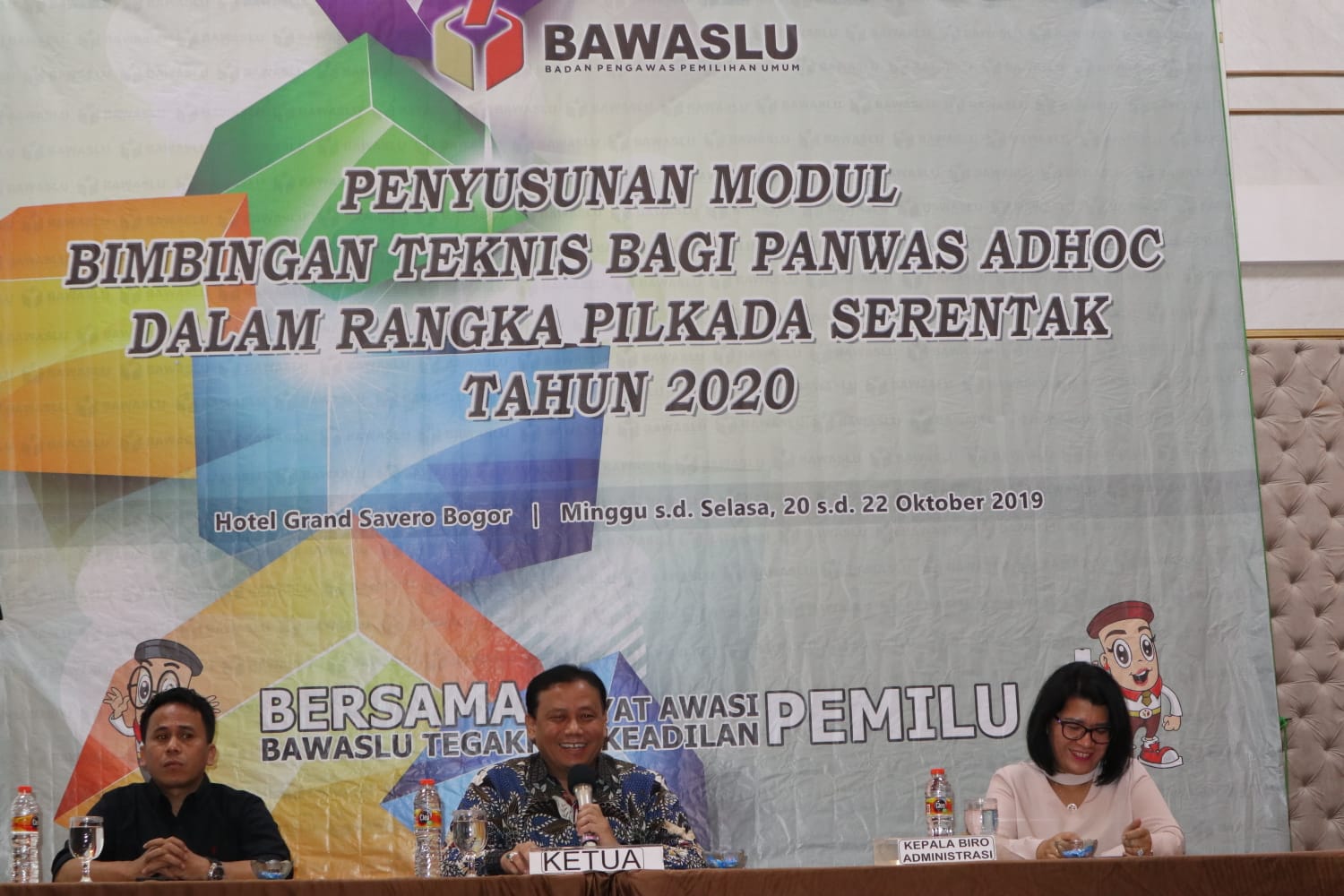 Bogor, Badan Pengawas Pemilihan Umum – Dalam meningkatkan kapasitas kerja pengawas Ad hoc (sementara) untuk Pilkada Serentak 2020, maka perlu dibuat modul bimbingan teknis (bimtek). Ketua Bawaslu Abhan mengungkapkan, materi modul dalam bimtek dari lintas divisi.