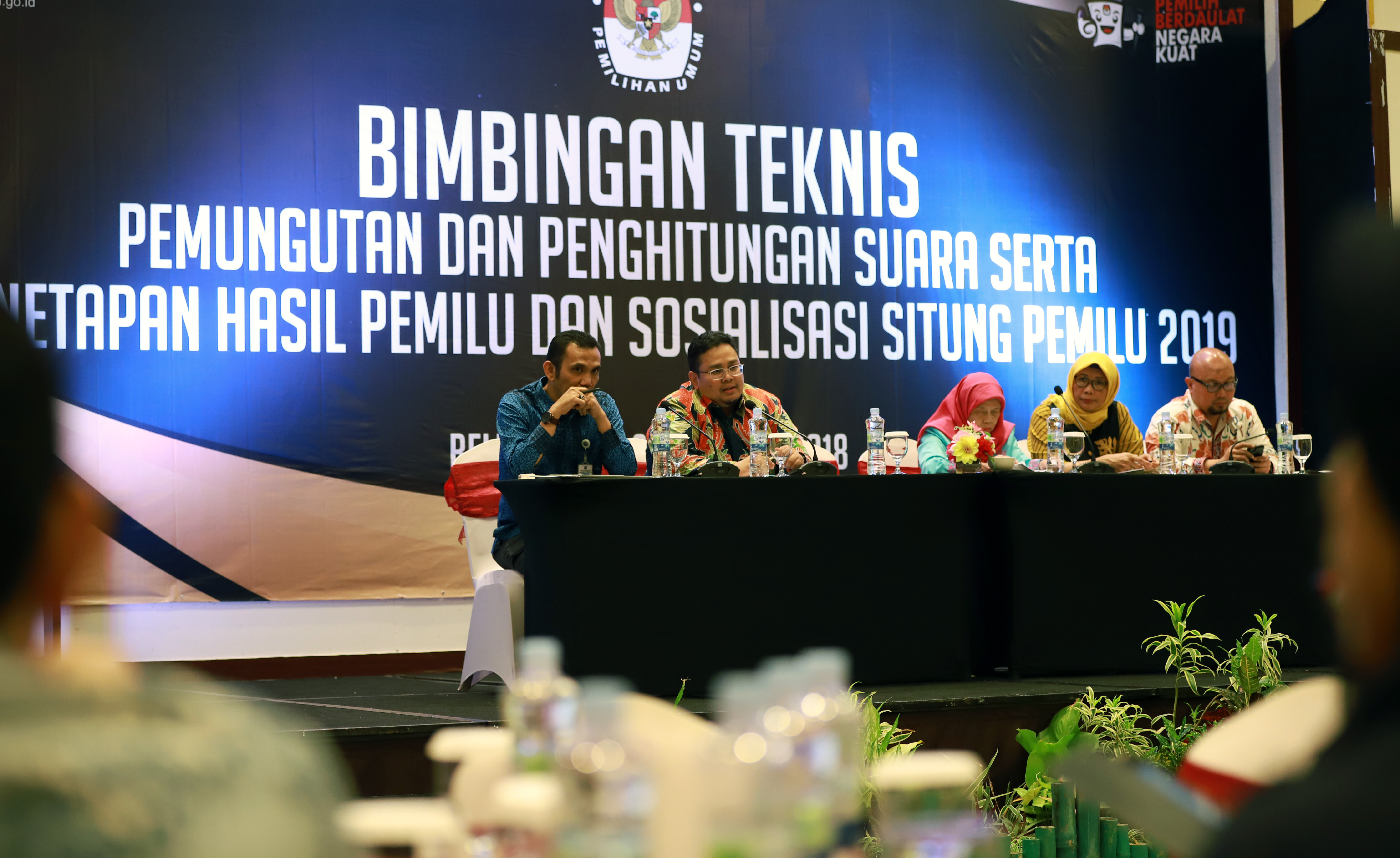 Anggota Bawaslu Rahmat Bagja menjadi narasumber pada Bimtek Pemungutan, Penghitungan dan Rekapitulasi Hasil Penghitungan Suara serta Penetapan Hasil Pemilu 2019 yang diselenggarakan Komisi Pemilihan Umum di Tanjung Pandan, Bangka Belitung, Senin (22/10/2018).