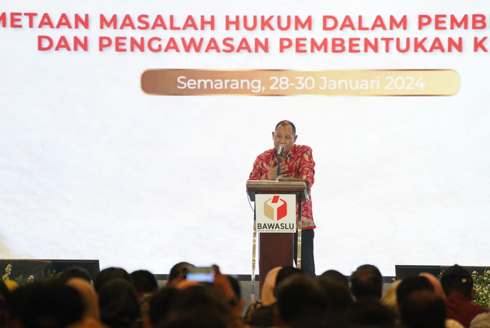 Semarang, Badan Pengawas Pemilihan Umum - Anggota Bawaslu Totok Hariyono berpesan kepada jajaran pengawas TPS (PTPS) untuk memastikan pemungutan dan penghitungan suara tidak cacat prosedur. Hal itu disampaikan Totok saat membuka Rapat Koordinasi Evaluasi dan Pemetaan Masalah Hukum Pembentukan PTPS dan Pengawasan Pembentukan KPPS, di Semarang, Senin (29/1/2024).